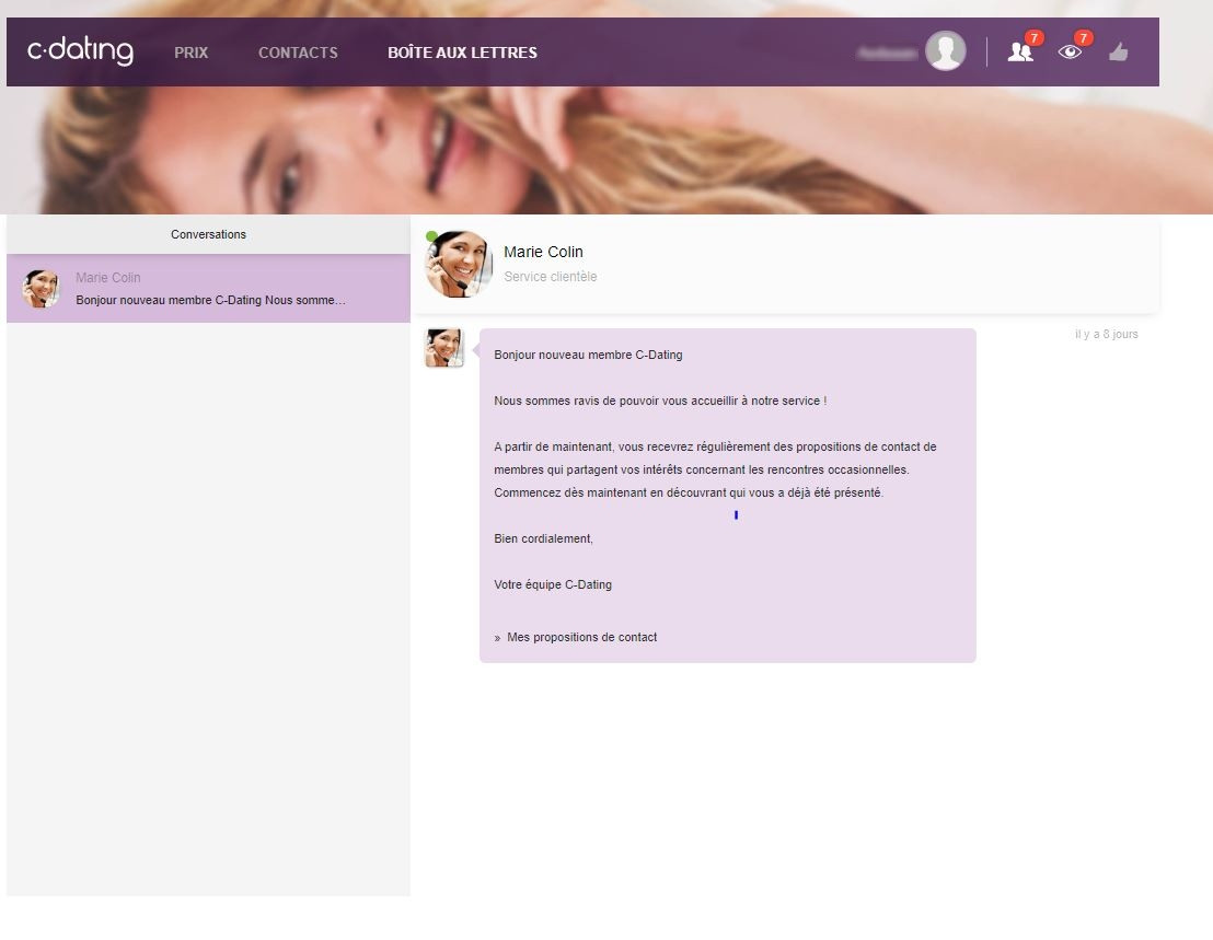 Je suis très satisfaite de mon expérience sur Cdate. Je n'ai pas renouvelé mon abonnement car c'est quand même un peu cher pour moi, mais en 3 moi j'ai déjà pu rencontrer pas mal d'hommes. D'ailleurs je suis toujours en contact avec certains d'entre eux.
