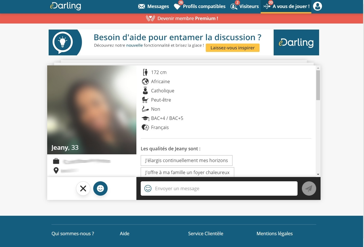 En voyant les prix d’eDarling, j’avoue que j’ai hésité à prendre un abonnement premium. Mais finalement je ne regrette pas du tout d’avoir cédé à la tentation, car j’ai déjà rencontré des hommes célibataires qui sont tout à fait mon genre.